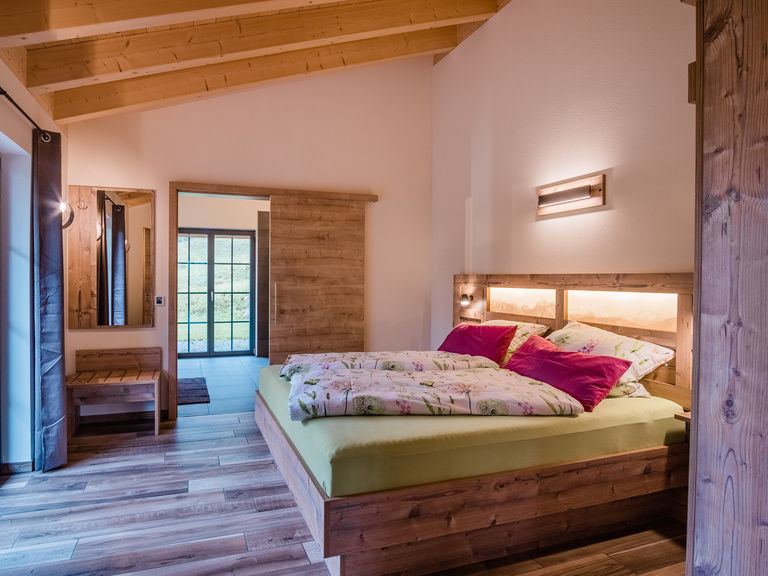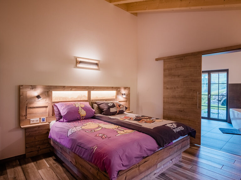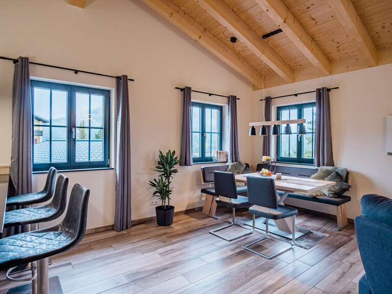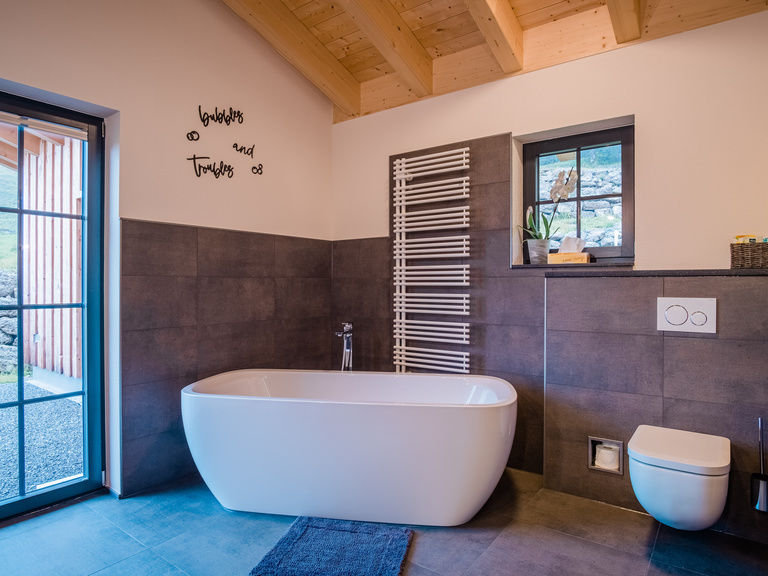 Chalet Komm An ist das unterste Chalet unsere Anlage mit 120qm Wohnfläche. Es liegt direkt über den Garagen, wodurch es einen eigenen direkten Zugang über die Garage hat. Ansonsten ist es vom Aufbau gleich wie das Chalet Steig auf. Zwei getrennte Schlafzimmer mit jeweils eigenem Badezimmer sorgen für Privatsphäre.
